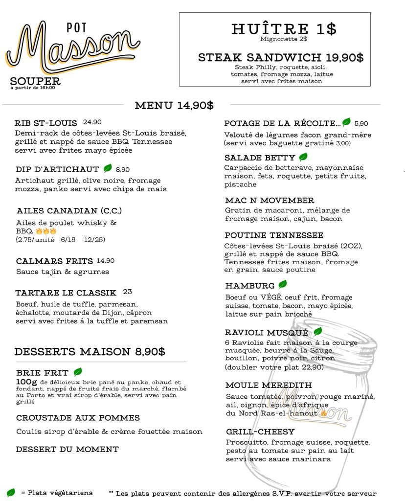 Menu nourriture: Resto restaurant Montreal-rosemont | Restaurant Pot Masson
