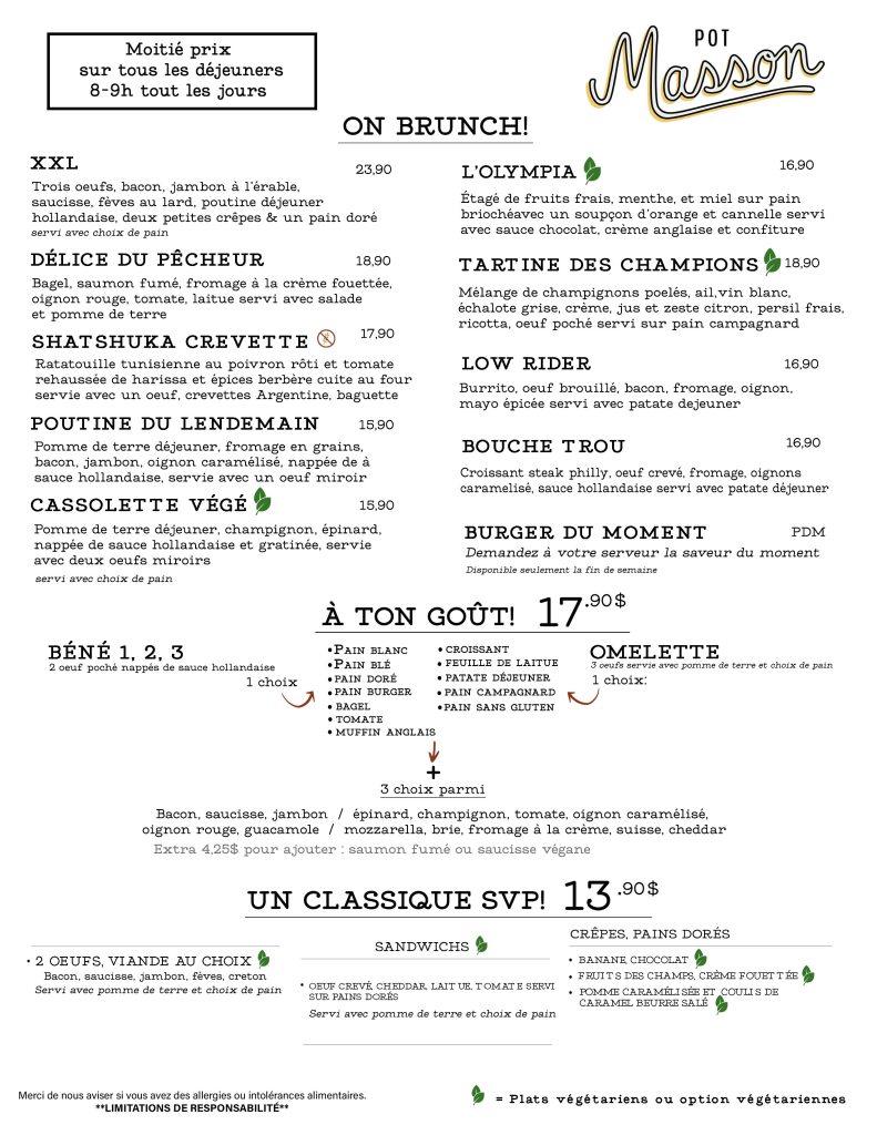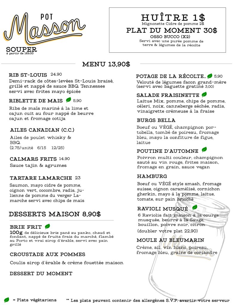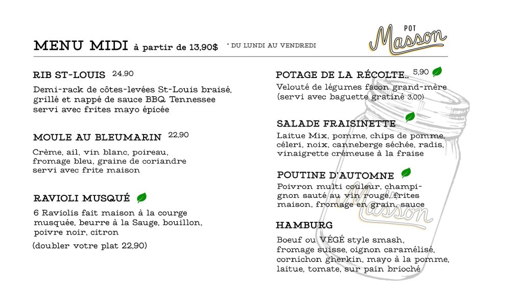 Menu nourriture: Resto restaurant Montreal-rosemont | Restaurant Pot Masson