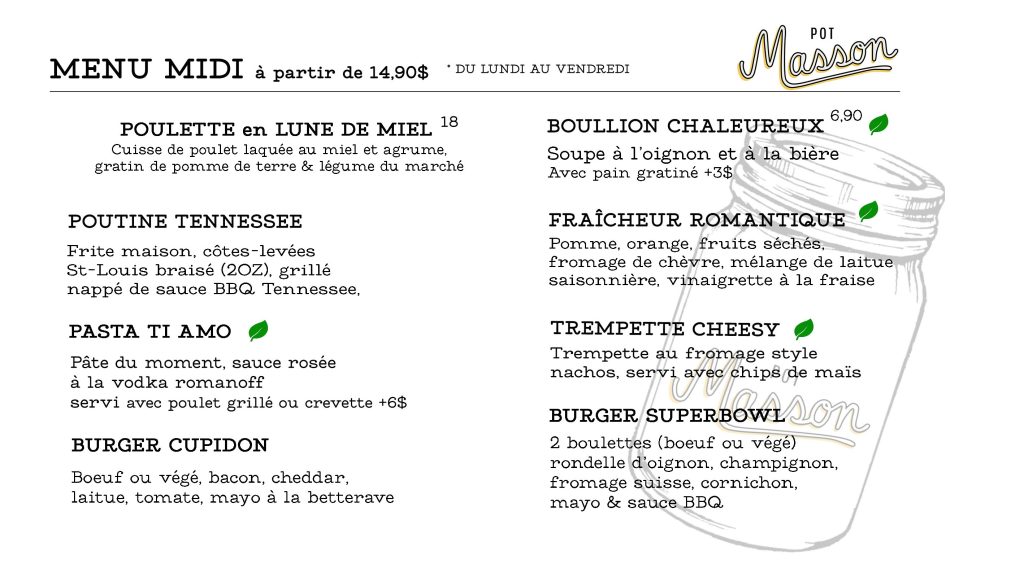 Menu nourriture: Resto restaurant Montreal-rosemont | Restaurant Pot Masson